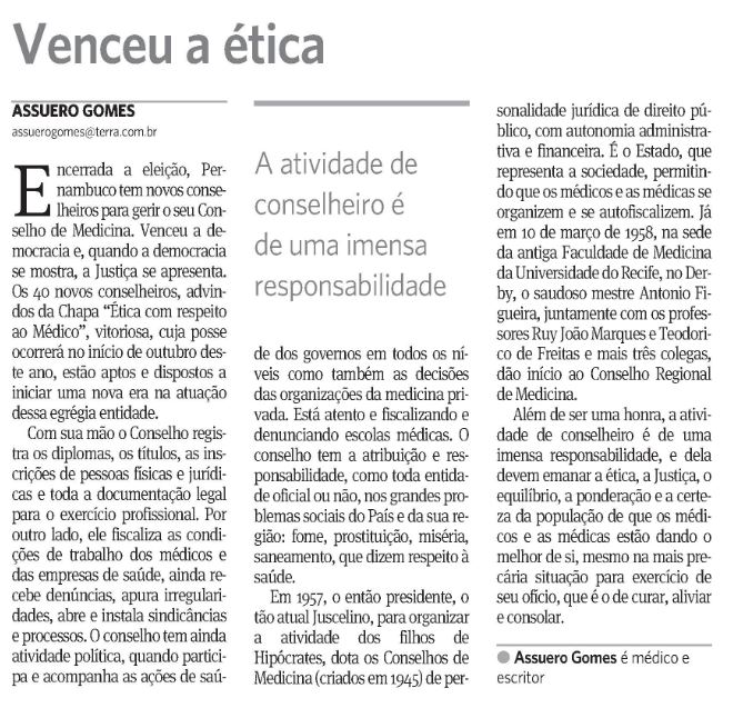 *Assuero Gomes é médico e escritor