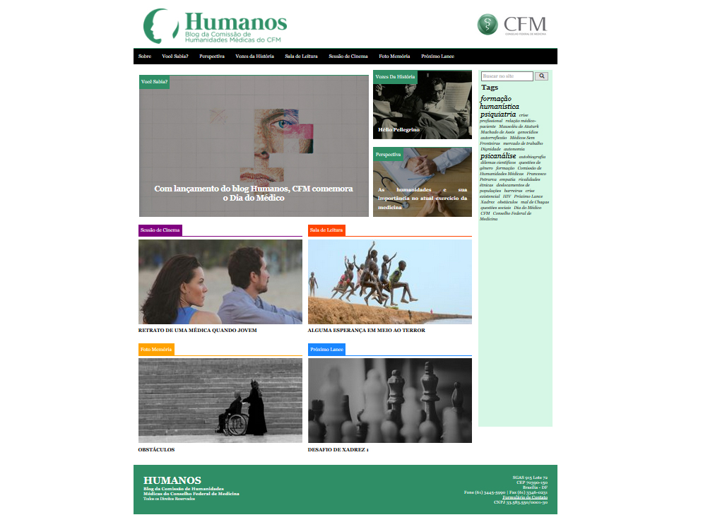 Concepção – A proposta de criação do blog “Humanos” partiu da Comissão de Humanidades Médicas do CFM, composta por conselheiros, docentes, titulares de Academias de Medicina e médicos de diversas especialidades interessados no tema. A intenção foi, com a ajuda do novo canal, abrir uma interface de diálogo construtivo com os médicos e estudantes de medicina, além de fomentar as reflexões esperadas.