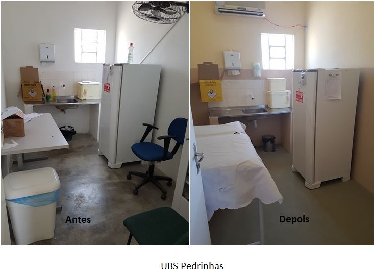 Já a unidade do povoado de Pedrinhas funciona como unidade satélite da Unidade Básica de Januária e foi muito modificada. O banheiro que funcionava como DML e ficava próximo à recepção foi transferido para a lateral da unidade, a coberta foi trocada e construída uma entrada para cadeirantes. No serviço, o médico atende um dia e o enfermeiro em outro, porém, a questão da vacina se repete.
