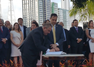 SOLENIDADE – Ao todo foram convocados 24 secretários e três auxiliares diretos. Na cerimônia, um dia após a posse do governador reeleito Paulo Câmara, Nilton Mota, que volta a comandar a casa civil, firmou o compromisso em nome dos demais secretários. Depois, o chefe do cerimonial fez a leitura do termo de posse e o governador e os demais secretários assinaram o livro de posse. Nilton Mota ainda falou em nome de todos os secretários e, por fim, o governador faz o discurso de encerramento.