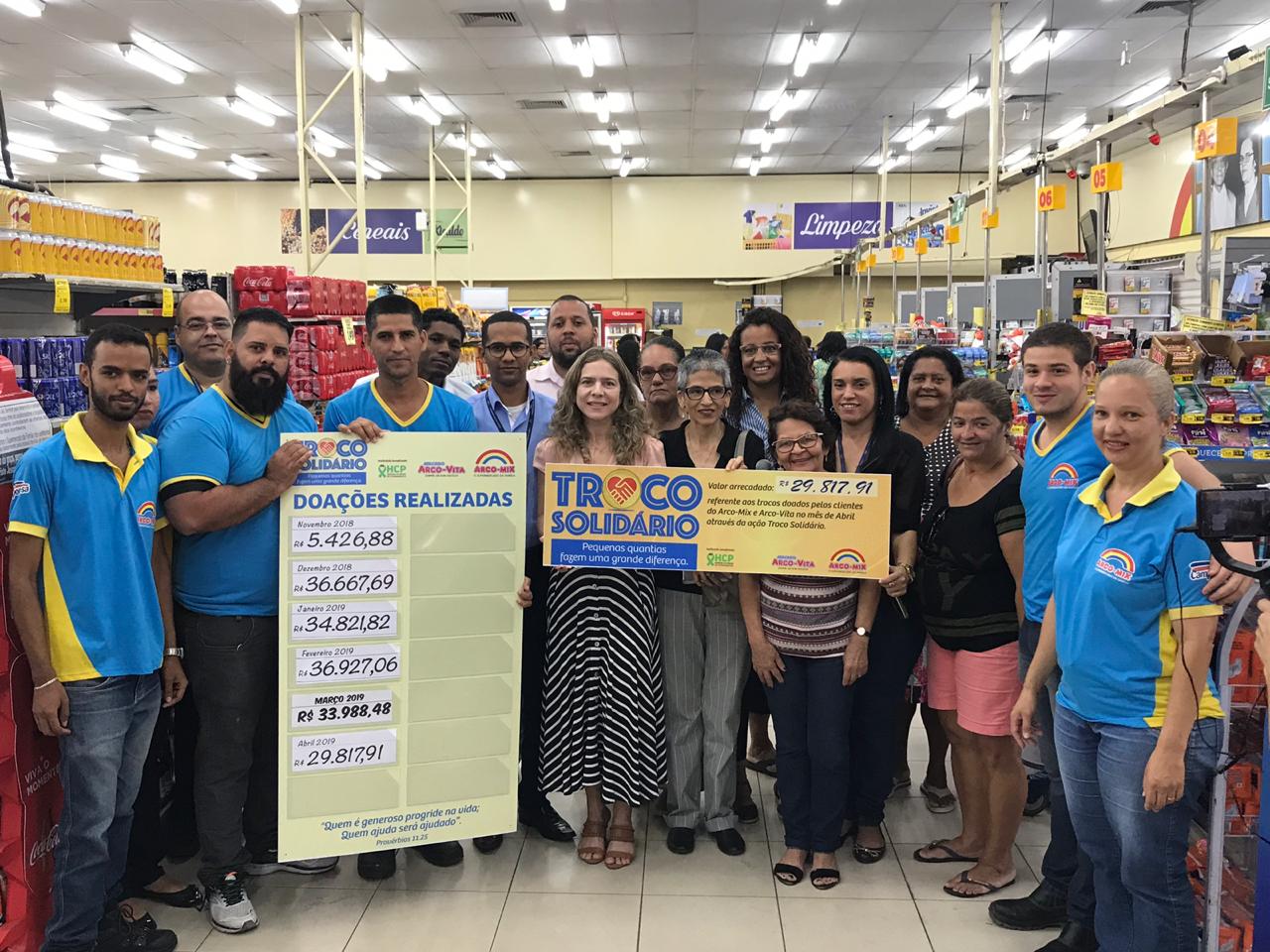 Os clientes das 19 lojas da rede e do atacarejo ArcoVita podem deixar uma parte do troco das suas compras, recebendo a informação discriminada no cupom fiscal. A ação começou em novembro e já soma quase R$ 200 mil, montante repassado ao hospital, que tem usado o valor para cobrir despesas mensais e planeja adquirir uma ambulância e reformar alguns setores.