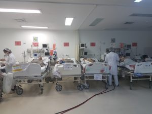 Para se ter a ideia da dimensão da superlotação, a emergência composta por 30 leitos (10 leitos na sala vermelha e 20 leitos nas salas amarelas) estava funcionando com 99 pacientes, dos quais, 27 em ventilação mecânica, com 330% de sua capacidade. Todos os 30 leitos de UTI estavam ocupados e os 120 leitos de enfermaria também.