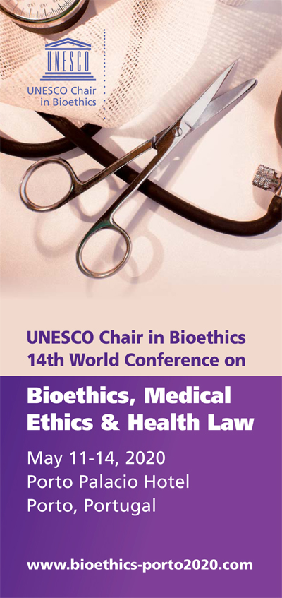 A UNESCO Chair in Bioethics, com o apoio da Faculdade de Medicina da Universidade do Porto (FMUP), organiza a 14th World Conference on Bioethics, Medical Ethics & Health Law, de 11 a 14 de maio de 2020, na cidade do Porto, Portugal.