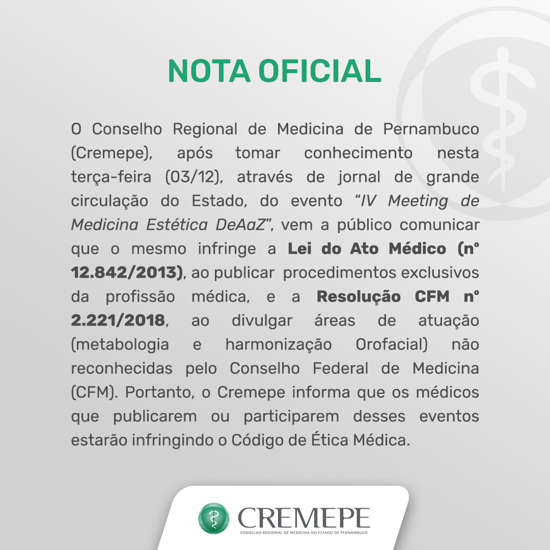 Na tarde desta terça-feira (09/12), o 1º secretário do Conselho Regional de Medicina de Pernambuco (Cremepe), Carlos Eduardo…