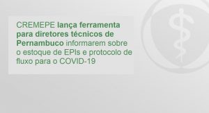 Os diretores devem seguir a Resolução CREMEPE Nº 03/2020 que “torna obrigatório ao diretor técnico ou médico designado, a notificação ao CREMEPE do protocolo para o fluxo de atendimento de pacientes com suspeita de Covid-19 e do estoque de EPIs disponível para os profissionais de saúde na unidade”. A partir das informações, caso haja déficit, o Cremepe entrará em contato direto com as autoridades sanitárias responsáveis.
