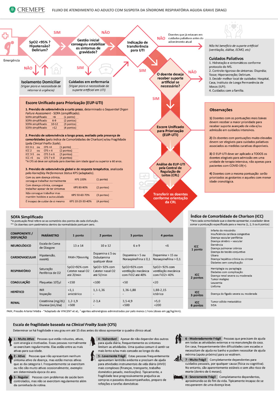 CONSIDERANDO a existência na literatura médica mundial de escores de priorização, garantindo o esforço para uso equitativo e eficiente dos recursos de cuidados intensivos, dentre eles o Sequential Organ Failure Assessment (SOFA) de avaliação de prognóstico a curto prazo e direcionamento de intervenções terapêuticas;