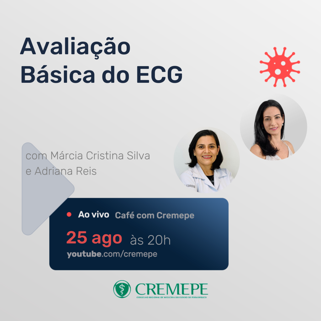 O Cremepe Promove na próxima terça-feira (25/08) a live sobre Avaliação Básica do ECG, com a presença das médicas cardiologistas Márcia Cristina Silva e Adriana Reis. A live será transmitida através do Youtube e Facebook do Conselho, às 20h.