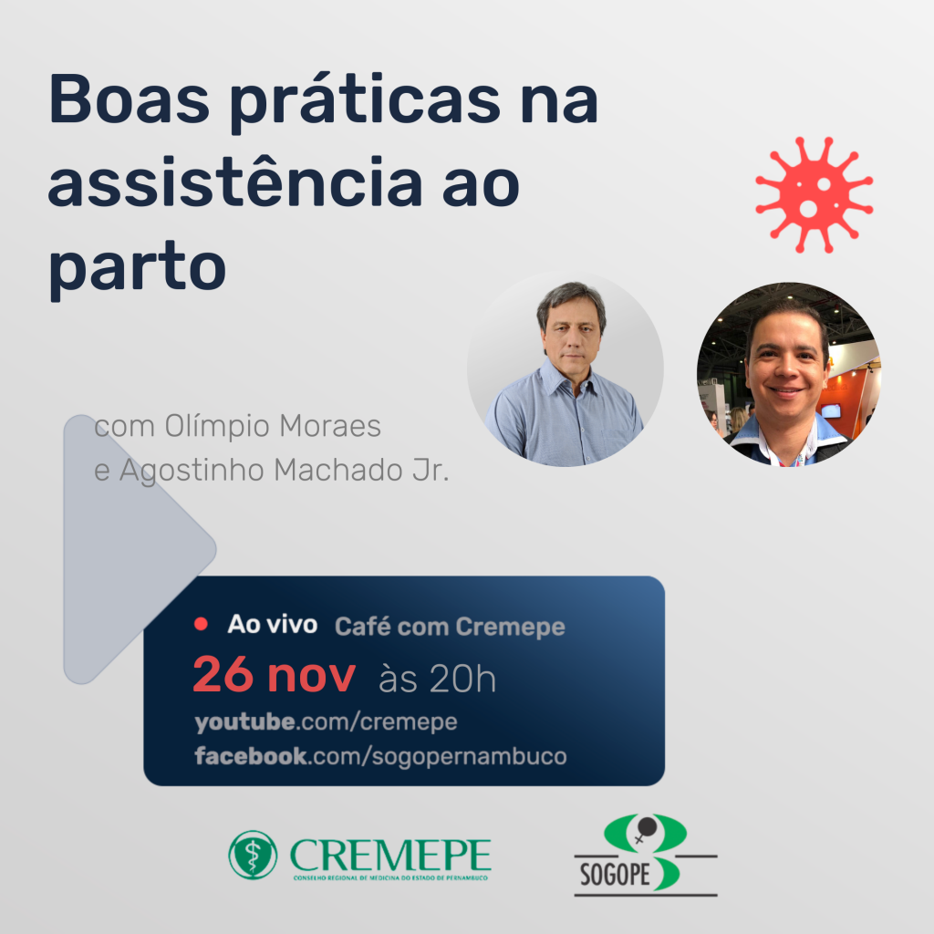 Assistência ao parto, pré-natal, cesárea ou parto vaginal geram muitas dúvidas para os pacientes. Pensando nisso, o Cremepe promoverá na próxima quinta-feira (26/11) a live sobre as boas práticas na assistência ao parto com os médicos Olímpio Moraes e Agostinho Machado Jr. A live começa às 20h e será transmitida através do Youtube, Facebook e Instagram do Conselho.