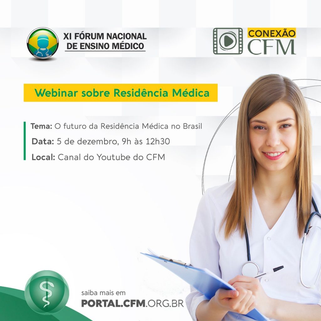 Depois de abordar temas como a avaliação das instituições de ensino e dos estudantes de medicina e a qualificação dos professores e preceptores, o Conselho Federal de Medicina (CFM) vai debater durante o XI Fórum Nacional de Ensino Médico “O futuro da residência médica no Brasil”. O evento, que ocorrerá em forma de webinar na manhã do próximo dia 5 de dezembro, será aberto ao público e não vai exigir inscrição prévia.