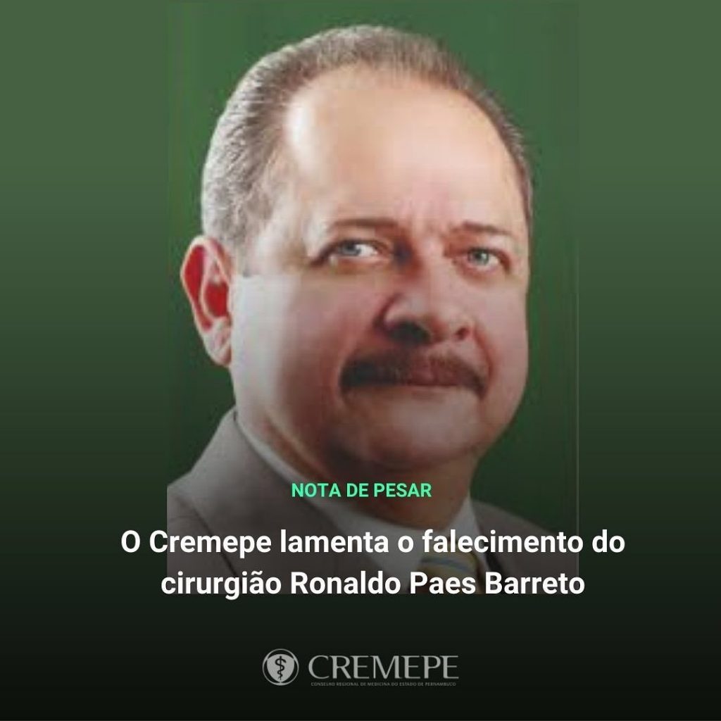 Com imenso pesar, o Cremepe comunica o falecimento do médico Ronaldo Paes Barreto, neste domingo (31/01/2021).