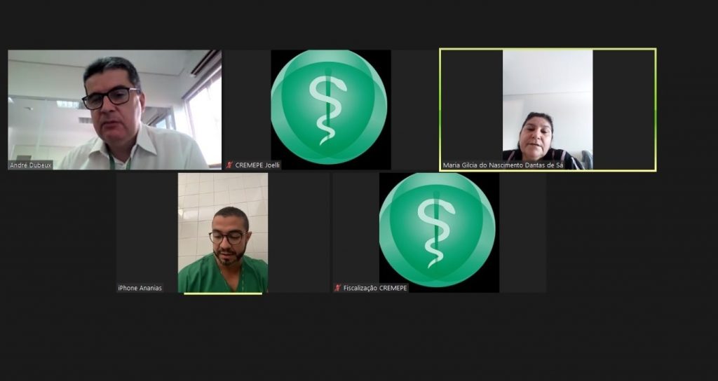 Na manhã desta quarta-feira (26/05), o 1º Secretário do Cremepe, André Dubeux, realizou tele-fiscalização no Hospital Regional Inácio de Sá, localizado no município de Salgueiro, sertão pernambucano. A vistoria foi solicitada pelo Ministério Público de Pernambuco (MPPE) e contou com a participação do diretor técnico do hospital, Ananias Nogueira, e da diretora da unidade, Gilcia Nascimento. O relatório será encaminhado à diretoria do Conselho e MPPE.