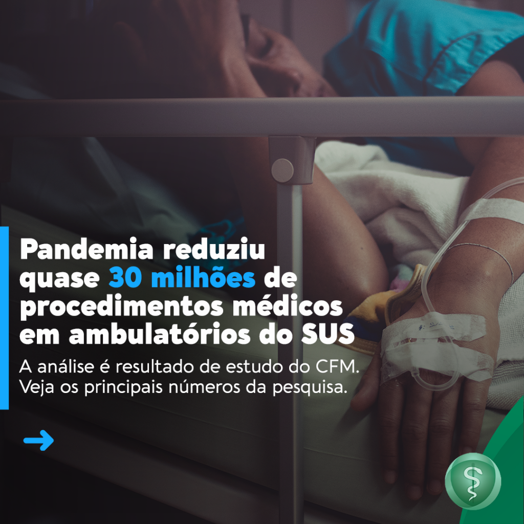 Ao comparar o volume de atendimentos médicos registrados no Sistema de Informações Ambulatoriais do Sistema Único de Saúde (SIA-SUS) e realizados entre março (primeiro mês da pandemia no Brasil) e dezembro de 2020 com o mesmo período do ano anterior, o CFM constatou a redução de pelo menos 16 milhões de exames com finalidade diagnóstica, 8 milhões de procedimentos clínicos, 1,2 milhão de pequenas cirurgias e 210 mil transplantes de órgãos, tecidos e células.
