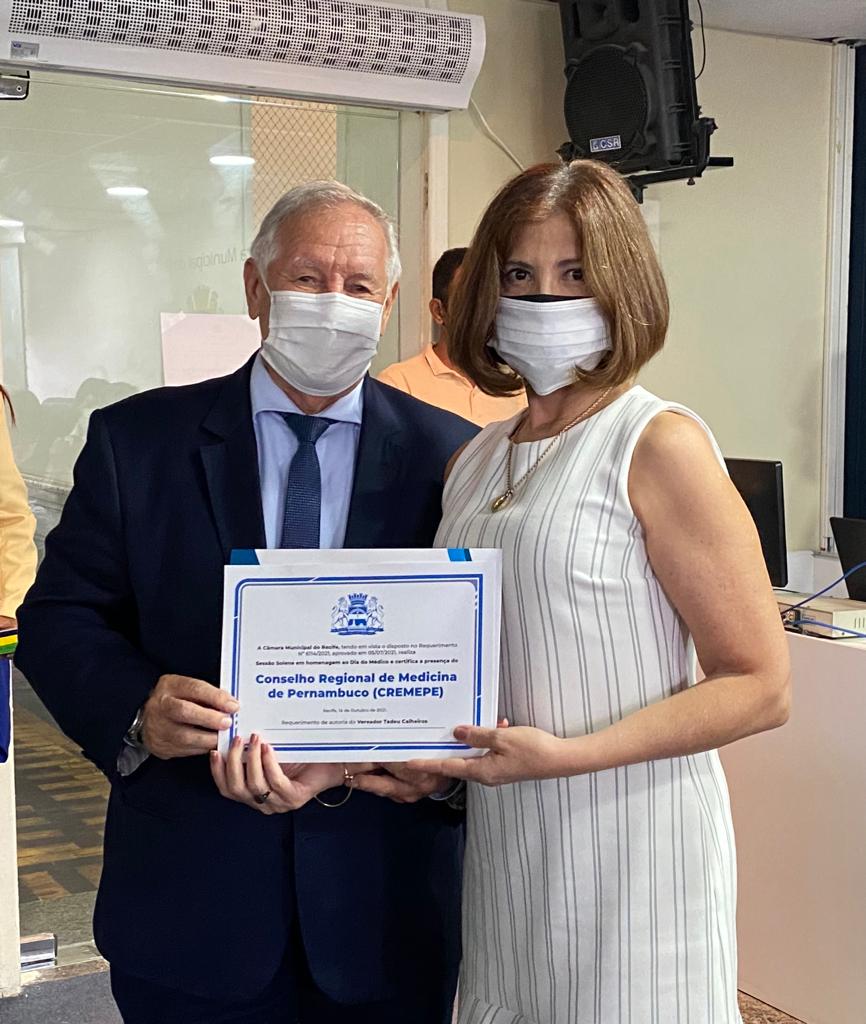 Fundado em outubro de 1931, o Sindicato de Pernambuco é o segundo sindicato dos médicos mais antigo do país. A solenidade foi proposta pelo vereador e médico Tadeu Calheiros, que cumprimentou os presentes e parabenizou os médicos pela comemoração. Na ocasião, foram entregues diplomas aos representantes das entidades médicas pelo Dia do Médico: Mario Fernando Lins; Claudia Beatriz, presidente do Simepe e Hildo Azevedo, presidente da Academia Pernambucana de Medicina. Foi entregue, ainda, a placa de homenagem aos 90 anos do Simepe à presidente da entidade. “Falar do Sindicato na verdade é falar das pessoas que o fazem. O Simepe é o instrumento dos médicos pernambucanos”, destacou Claudia Beatriz.