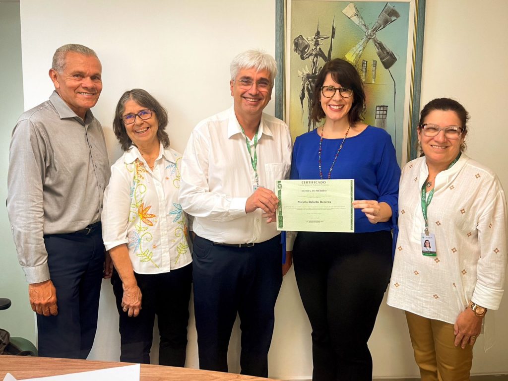 A ocasião foi marcada pela entrega do certificado de Honra ao Mérito à Dra. Mirella, por sua defesa de doutorado, realizada dia 28/08. Sua tese, desenvolvida sob a orientação da Profa. Dra. Maria Júlia Gonçalves de Mello, que também esteve presente na reunião, abordou o tema “Escolhas difíceis devem ser feitas com sabedoria para a sobrevivência em tempos complexos: Desenvolvimento e avaliação do desempenho de um escore de priorização para acesso aos cuidados intensivos”.