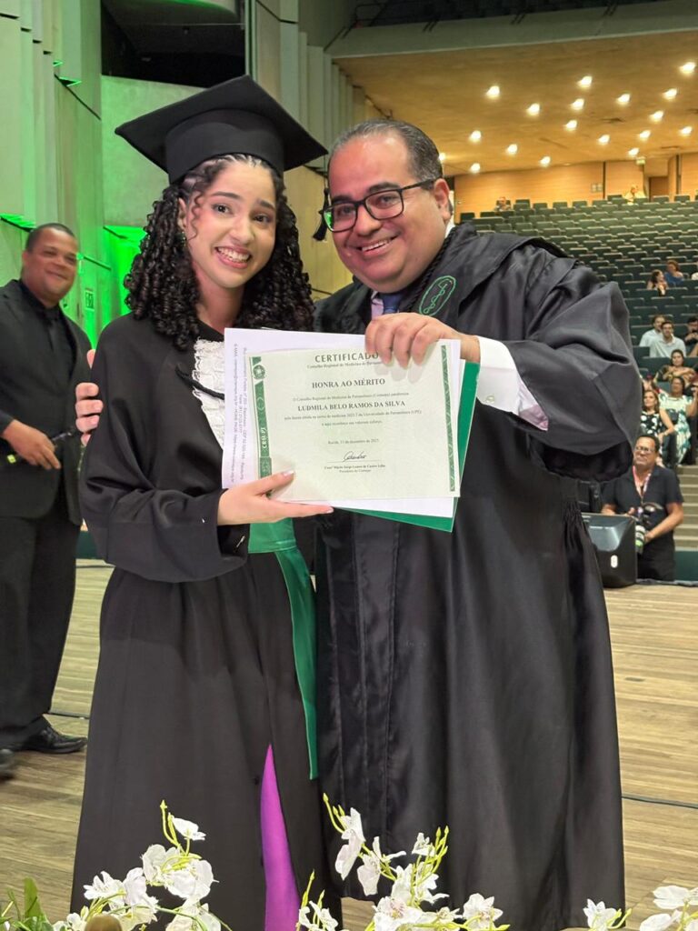 O Cremepe também esteve representado na colação de grau da Turma 113 do curso de Medicina da Faculdade de Ciências Médicas da Universidade de Pernambuco (UPE), por meio do conselheiro Alexandre Mattos. Além de representar o Conselho, ele foi professor homenageado pela turma e realizou a entrega da tradicional Menção Honrosa do Cremepe à laureada Ludmila Belo, em reconhecimento ao seu destaque acadêmico.
