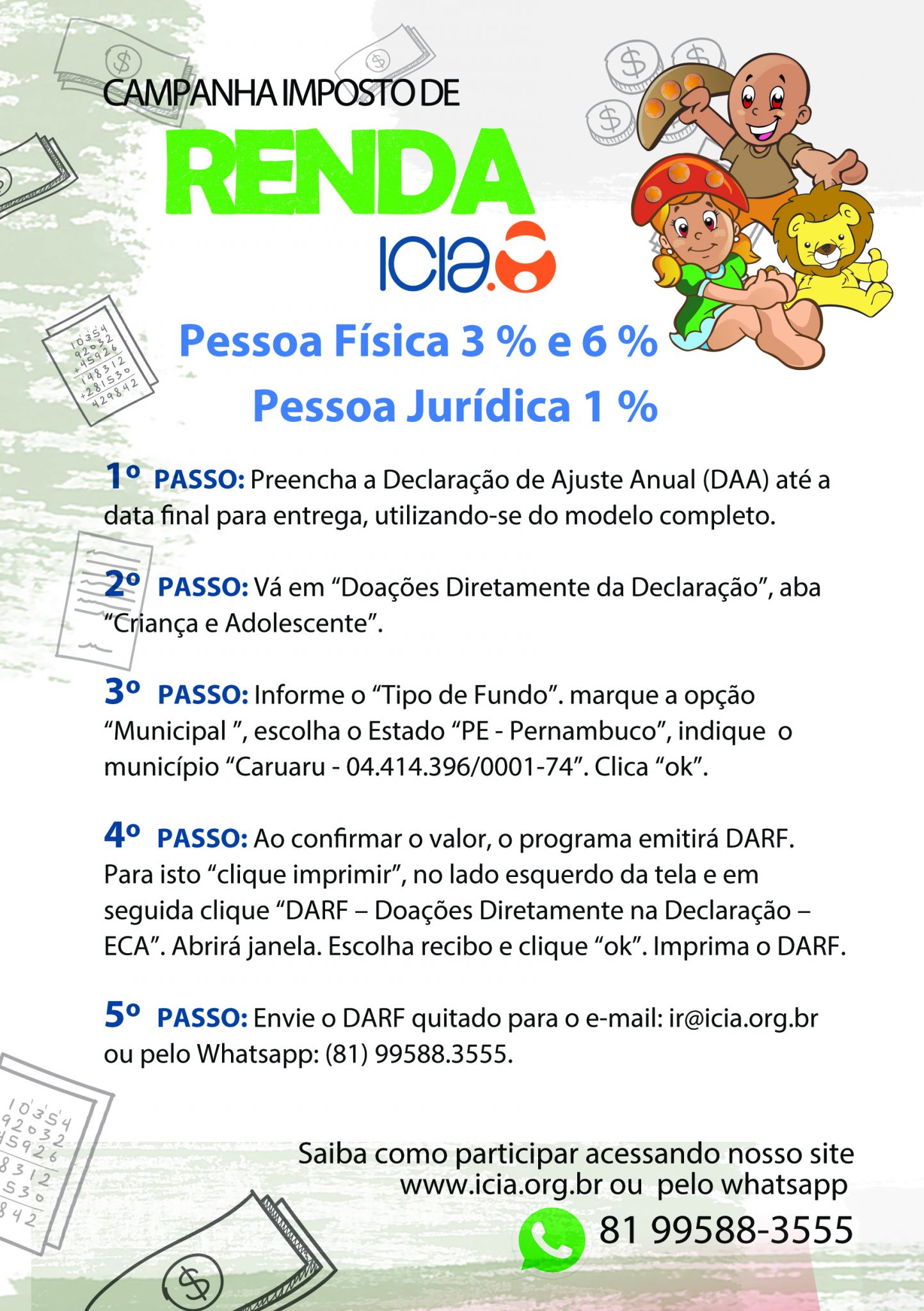 Campanha imposto de renda do Instituto do Câncer Infantil do Agreste