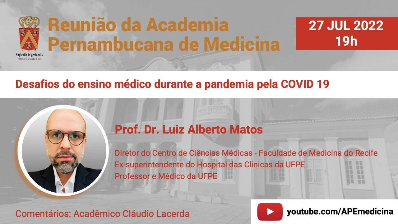 Desafios do ensino médico durante a pandemia pela COVID 1927 de julho de 2022 às 19hProf. Dr. Luiz…