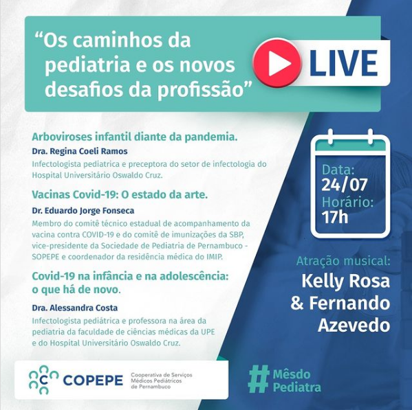 A Cooperativa de Serviços Médicos Pediátricos de Pernambuco (COPEPE) promoverá, no próximo sábado (24/07), às 17h, a live…
