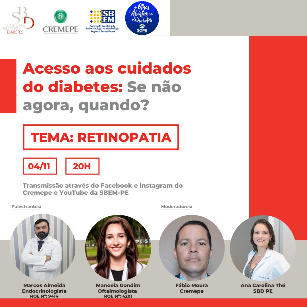 As sociedades de Diabetes, Oftalmologia e Endocrinologia e metabologia em parceria com o Cremepe promovem no dia 4…