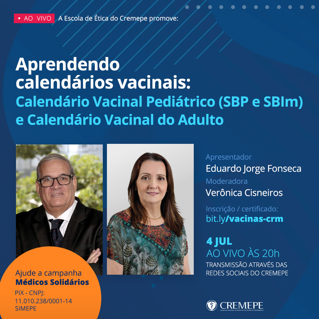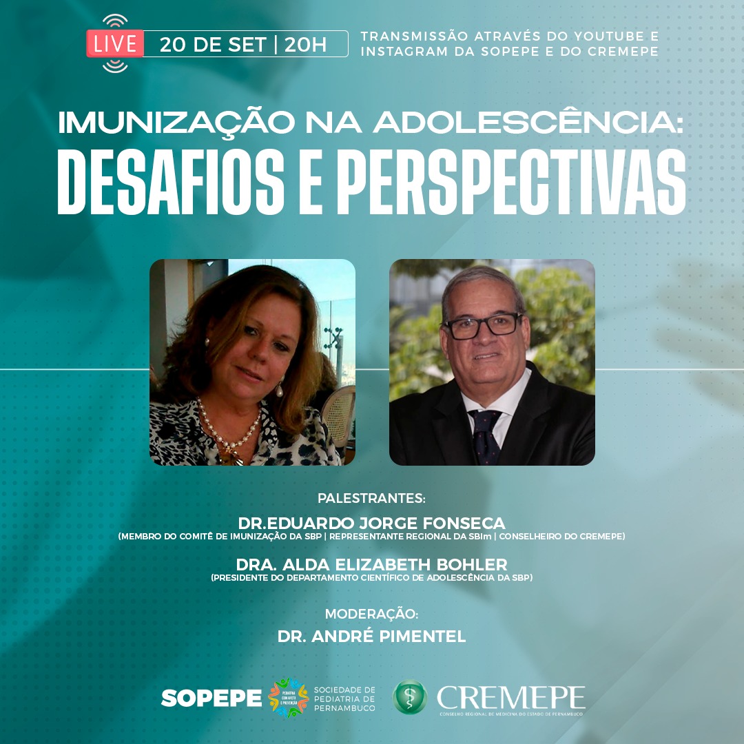 O Cremepe e a Sociedade Pernambucana de Pediatria (Sopepe) promoverão a live sobre imunizações na adolescência: desafios e…