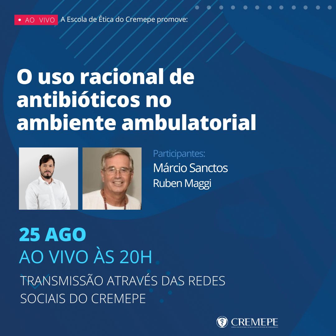 Na próxima quinta-feira (25/08), o Cremepe promoverá uma live sobre “O uso racional de antibióticos no ambiente ambulatorial”,…