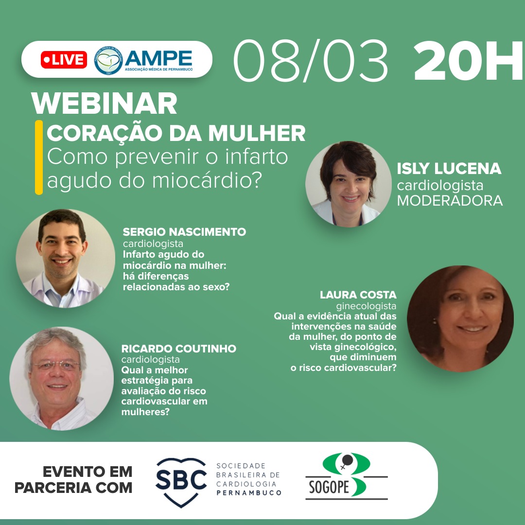 A Associação Médica de Pernambuco (AMPE) promoverá no próximo dia 8 de março, às 20h, a live “Coração…