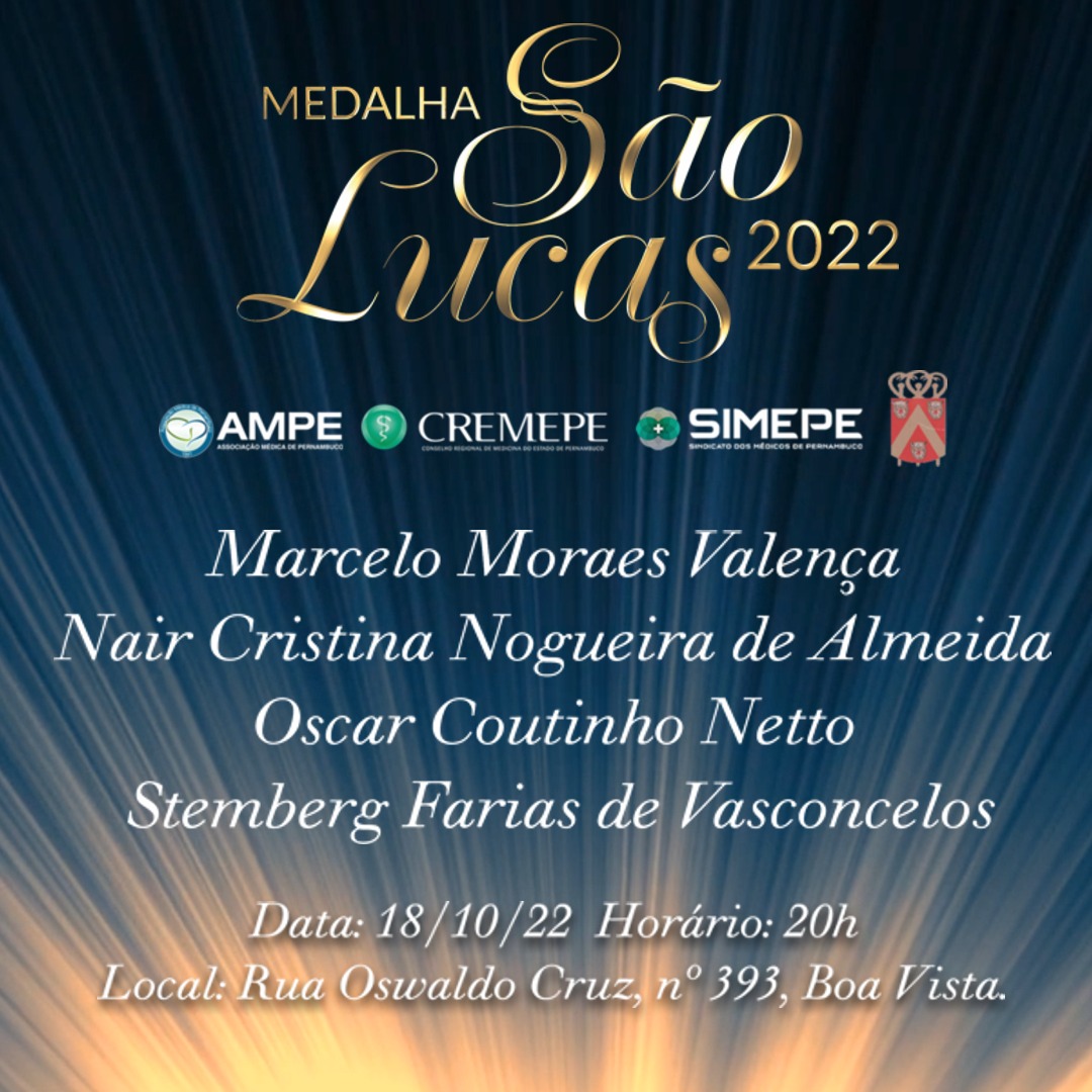 A Ampe, Cremepe, Simepe e Academia de Medicina promovem a 52ª Cerimônia de entrega da medalha São Lucas…