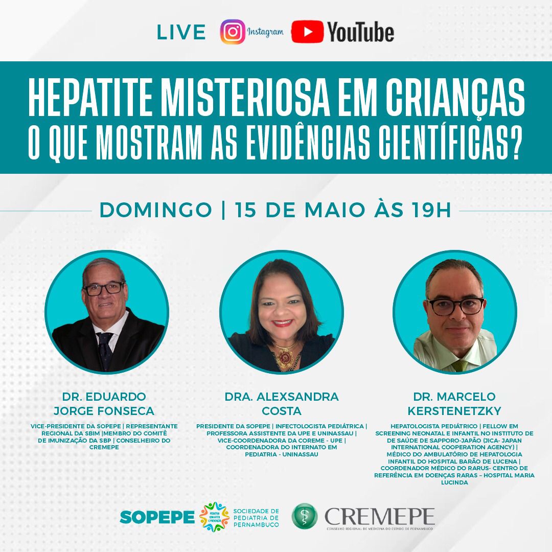 Cremepe e Sopepe promovem live sobre “Hepatite misteriosa em crianças – o que mostram as evidências científicas?”