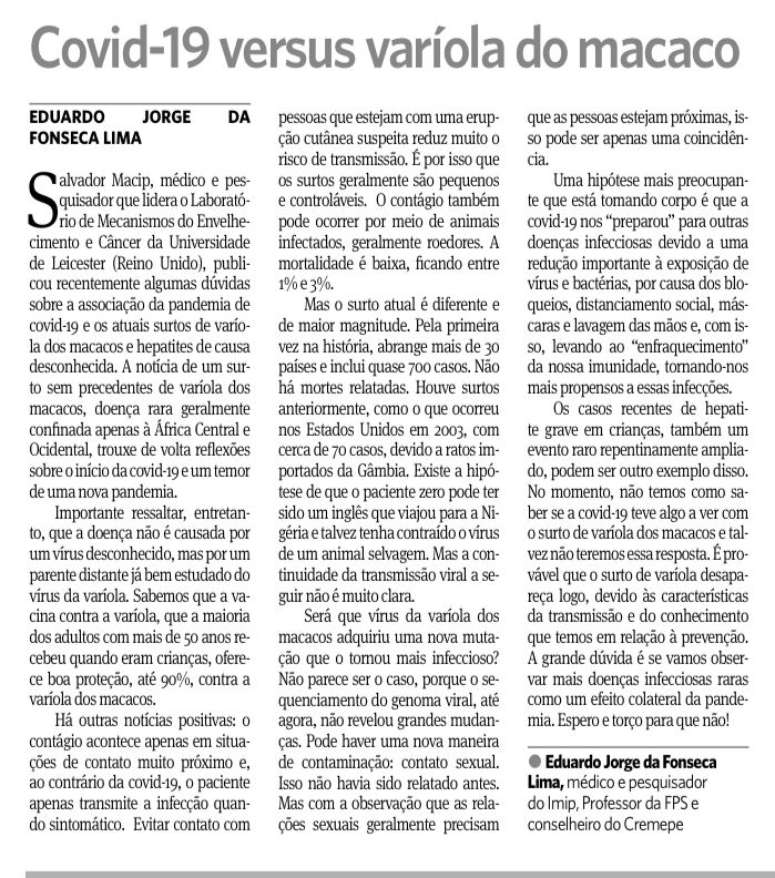 Covid-19 versus varíola do macaco